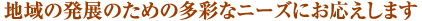 これからも当社は、地域の生活と経済の発展のために、資材と技術の提供を通じて、新しいニーズにお応えしてまいります。